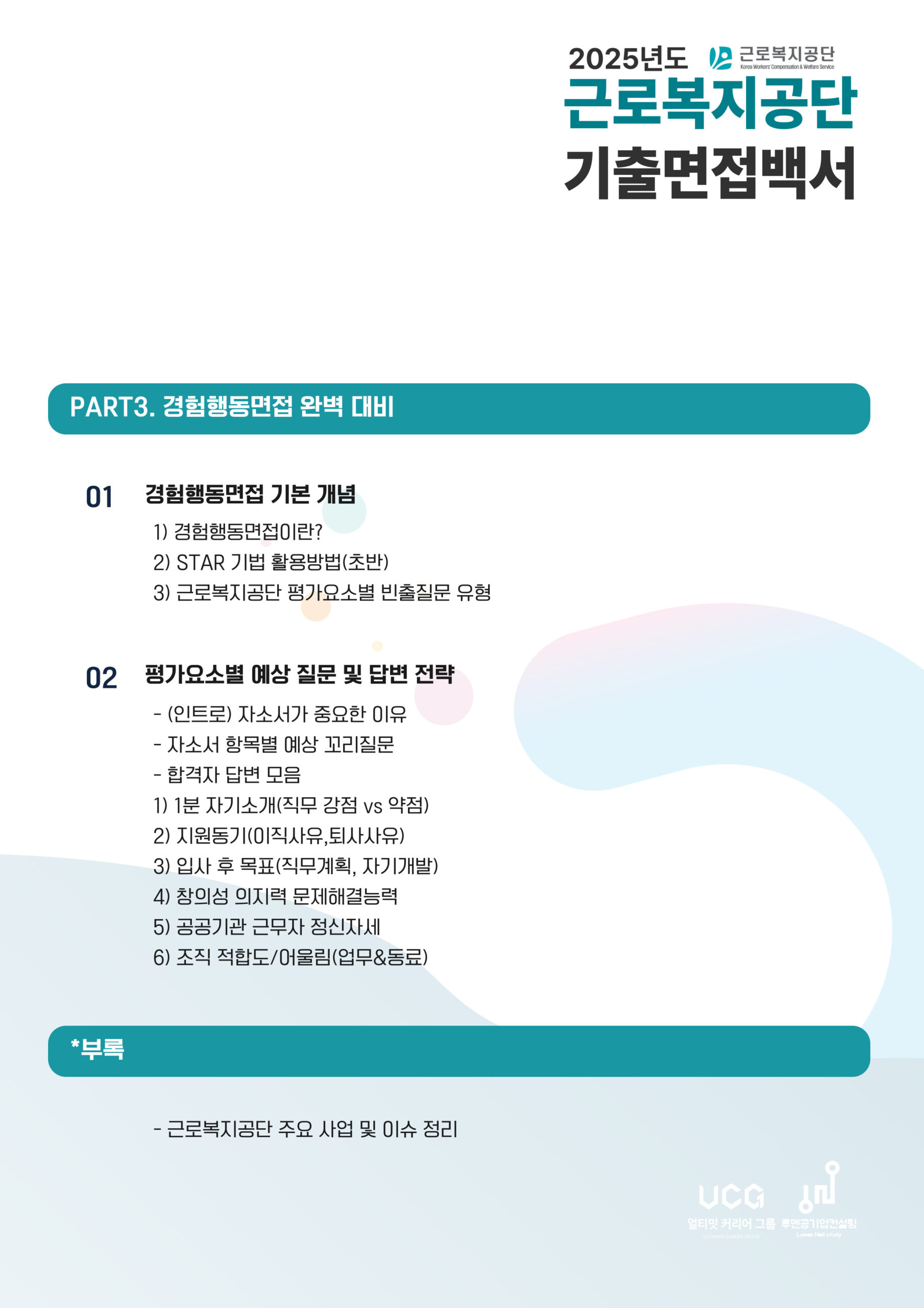 | PART 1. 근로복지공단 면접 유형 이해 및 준비 전략 | 00:00:00 | ||
