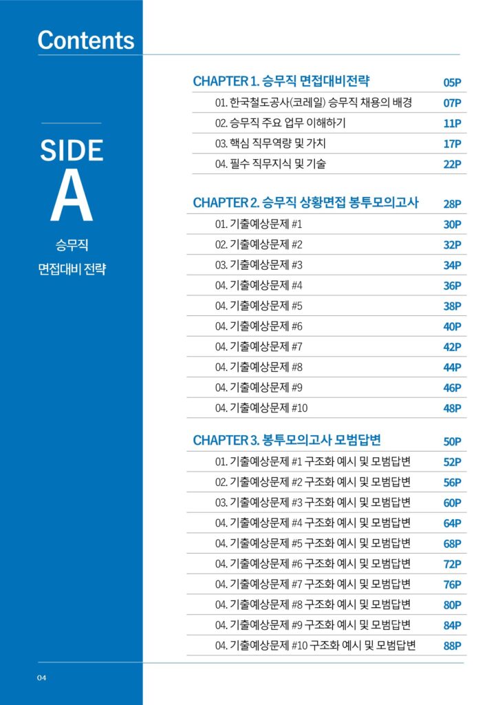 | [2025] 한국철도공사 상황면접 봉투모의고사 & 모범답변 (승무직)_PART1. 승무직 면접대비전략 | 00:00:00 | ||